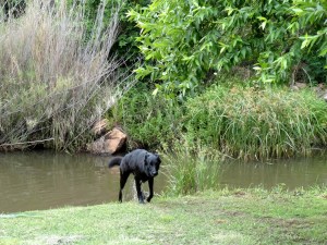 I went down to the river after drinking some home-made, delicious ginger beer made by his wife, sat by the stream, smoked a small joint, played with a stunning dog that came to join me, swam, and then meditated a tad.