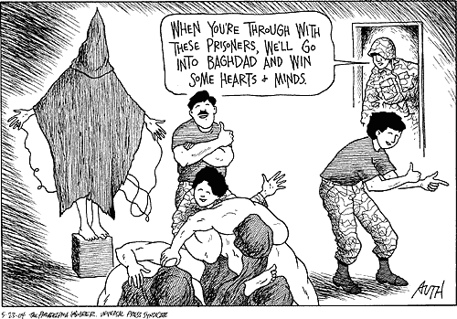 Of course there will always be fundamentalist and self-righteous tendencies in politics and other fields that need to set up an ‘other’ as opposite, with all the horrific consequences that ensue, as in the recent case of ordinary American country folk torturing and killing Iraqi prisoners of war in Abu Ghraib prison. The American defence minister’s public reasoning on this torture is that, far from being the carefully considered act of war between two nations that it was, it was supposedly a dirty deed carried out by rogue individuals. In the terminology of this text: that no ‘sword’ was involved. As a result of this denial the torturers will soon be publicly demonised and punished (under the same principle of othering), thereby serving as scapegoats for all those who have been actively involved in creating a lawless situation in these prisons in the first place. If the idea of a ‘mighty pen’ could be trusted to be referring to a positive pragmatism rather than a positivist idealism, it might now for example be able to symbolise an international military court, which could serve to address this new form of ideological and propagandist warfare. This kind of warfare is reminiscent of the public display of the severed heads of enemy soldiers in the Middle Ages, but it infinitely transcends it in calculation and coldness. That Iraqis are responding ‘in kind’ (with the recent public killing and burning of American tourists), surprises less than the Americans’ refusal to submit their soldiers to said international court of war.