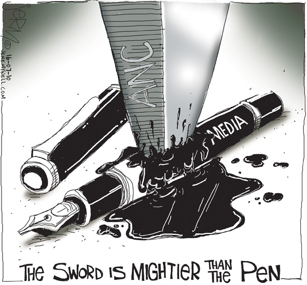 Most people today do not believe that wars are stopped by anything somebody writes with a pen: In fact, we are becoming increasingly sensitised to the demagoguery of the media. The worst wars, the greatest weapons, the most inescapable conflicts, the most far-reaching crimes and deepest infringements of basic human rights are all created on paper, but they are rarely prevented and almost never undone again through the use of that medium.