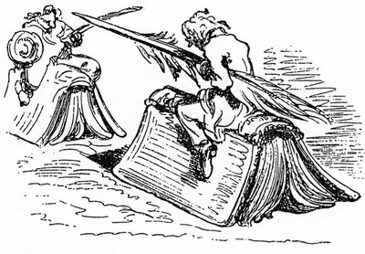 Many readers today are not used to enjoying or savouring the tensions and creative spaces offered by a linguistic symbol – they seem to lack the ability to read symbols as such. This is best exemplified by the mass of websites containing most literal readings of the quote. Self-defence sites for women describe a variety of techniques for using a pen as a weapon; crime-writer blogs publish stories investigating the poisonous qualities of ink; ‘Dungeons and Dragons’-fans have ‘webrings’, where the interpretations voted into the top five all delight in ‘setting things right’: the pen would have to be very big and the sword very small… etc. Many readers who have enjoyed the privilege of being exposed to a variety of literary genres may shudder at the shallowness of this method of constructing linguistic communication, but recognising the widespread reality of this practice could also be a less prematurely judgmental process and even bear new creative fruit: new sets of immediately recognisable symbols are forming all the time, including all the potential pitfalls of more or less hidden reactionary sentiments, but far more open to widespread critical discussion.