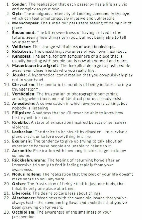 23 lesser described feelings