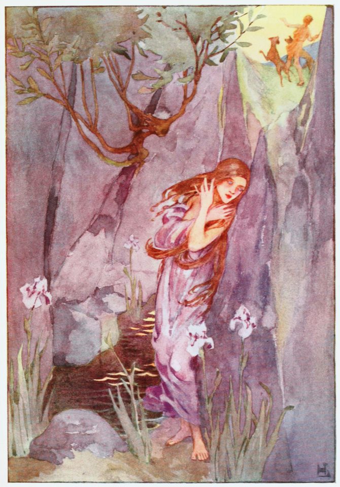 Or Echo gave birth to Peitho, Goddess of Soft Speech or of Seductive Persuasion. Peitho was handmaiden to Aphrodite, and became the bride of Hermes. Peitho had her own cult in Athens, said to have been introduced to the city by none other than Theseus. She is given several genealogies and isn’t invariably a daughter of Echo, but the notion that she was Echo’s daughter was sensible in that both were associated with speaking.